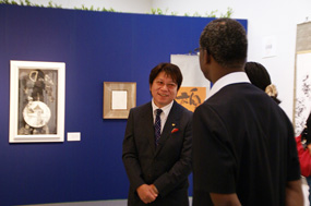 H.E. Ambassador Benson Ogutu is welcomed to the Exhibition Hall |