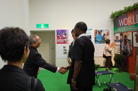 H.E. the Ambassador being conducted through exhibition hall by the President of WPAE Mr. Hidetoshi Kushida |