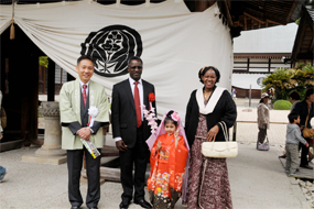 From left to Right Mr. Akihiko Kamiya, Mayor of Higashiura, H.E. Ambassador Benson H.O. Ogutu, a young Higashiura citizen and Madam Benter O.A. Ogutu |