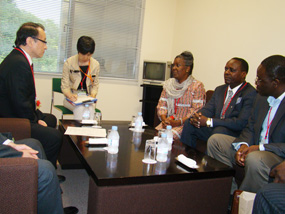 ![]() Minister consults with HE Amb. Ben Ogutu during the opening of the Disaster reduction conference in Tohoku on July 3 2012. On her right is PS Andrew Mondoh. |