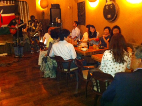 ![]() Guests downing a cool Tusker while enjoying Kenyan Music |