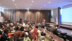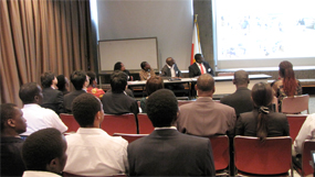 ![]() Prof. Nathaniel Agola, President & CEO of Qweza Inc, making a presentation on Harnessing the Diaspora in Japan for National Development on 22nd September, 2012 | ![]() Participants paying attention during the Panel Session on Harnessing the Diaspora for Education for Development on 22nd September, 2012 |