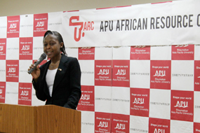 The Launch of the APU African resource centre (ARC) was graced by Prof. Dr. Sanga-Ngoie, Coordinator, Graduate GP ENVOL program and Prof. Dr. Mani, A, Vice President College of Asia Pacific Studies, who both encouraged the students to continue the remarkable work of being good ambassadors of their beloved countries and Africa in general. The Centre is an association formed by the APU Alumni Union in collaboration with the APU students with a mission to improve links between Japan and Africa through the cultural exchanges and other mutually beneficial interactions.