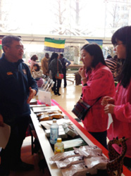 Trade and Tourism Assistants; Ms. Kuroko and Mr. Hayakawa cheer-up for the exhibition |