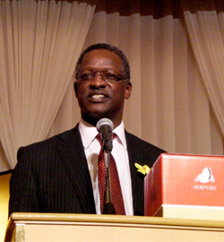 H.E. Ambassador Benson H. O. Ogutu, addressing members of Fukuno-kai at Meiji Kinenkan.