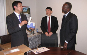 The Green Medical Co., Ltd., a Tokyo based used medical equipment distributor and exporter, has donated brand new lung inspection devices to the Embassy of Kenya. Speaking during a courtesy visit to the Embassy on 19th February, 2013, the Company's President Mr. Yoichiro Takahashi said that he was keen to collaborate with Kenyan Medical institutions and dealers in Medical diagnostic instruments to contribute to the improvement of medical services Kenya.