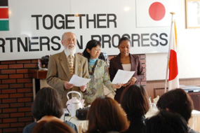 Mr. Michio Hiraiwa, Ms. Masayo Hiraiwa and Ms. Nelly Wanjala introduce a Kenyan song to seminar participants. |