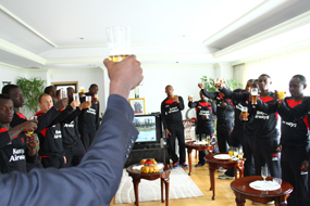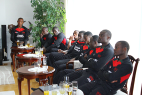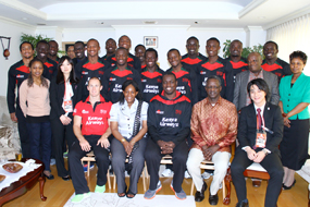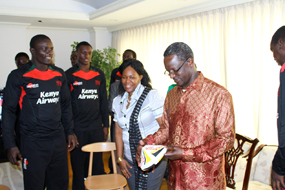 H.E. Ambassador Benson H.O. Ogutu hosted the team for lunch on 1st April, 2013. During the luncheon, the Ambassador congratulated the players for their good performance in the IRB World Series and at the same time encouraged them to aim high in the remaining two tournaments scheduled for Scotland and England respectively.