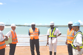 During the visit, H.E. the Ambassador had a guided tour to the JICA's second container terminal under construction by Toyo Corporation and also Mombasa port development projects. Japan is currently involved in the construction of three berths at the port of Mombasa. The Ambassador was impressed with the major developments at the port whose aim was to enhance the capacity and efficiency of the Mombasa Port hence the increase in the maritime trade in Eastern and Central Africa region. Mombasa Port Project began on 20th November, 2007 and is expected to be completed in November, 2015.