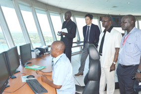 H.E. the Ambassador (standing 2nd from right) visits the Port Control Tower in Mombasa, 21st March, 2013. |