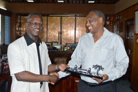 H.E. the Ambassador exchnages gifts with Eng. Samatar, General Manager Infrastructure Development at Kenya Ports Authority, 21st March, 2013. |