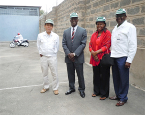 ![]() Amb. Ogutu, the Kenyan Ambassador to Japan, MD. Yasuhiro Imazato, Chairman Dr. Isaac Kalua and Mrs. Ogutu at the dynamic test zone of Honda Motorcycle Kenya Ltd, during a tour of the Motorcycle assembly plant in Kenya. |