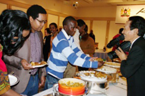 In his remarks, the Ambassador shared with the Diaspora the message delivered in Nairobi by H.E. the President during the Kenya's Golden Jubilee. He updated on various initiatives by the Government aimed at engaging and mainstreaming the Kenya Diaspora into country's national developmental agenda. These include the recent establishment of the Digital, New Media and Diaspora Directorate at State House to coordinate issues of the Diaspora on a regular basis. The Ambassador also acknowledged with profound appreciation personal contributions by the Kenyans in Japan towards a better Kenya, saying there were a couple of investments and new businesses ventures in Kenya, courtesy of the Diaspora. He asked Kenyans to register with the Embassy.