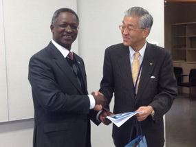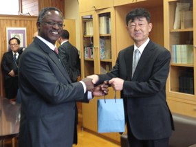At the invitation of the local business leaders, the Ambassador of Kenya to Japan, H.E. Mr. Benson H.O. Ogutu, recently made an official visit to Nagano prefecture. Projects visited during the tour included the Japan Agriculture (JA), Matsumoto farmers' cooperative; the Hino Truck Plant in Matsumoto, a solar-power farm; a small scale solar powered street lighting project; and the Hachimori Junior High School.