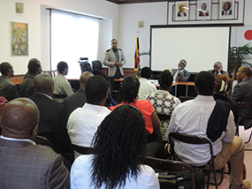 Group photo at the Embassy including Amb. Ben H.O. Ogutgu, Amb. S.K. Maina and Dr. Emmanuel Mutisya |