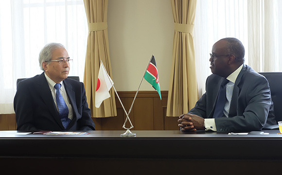 As part of his familiarization visits, His Excellency Ambassador S.K. Maina recently visited the Oita Prefecture where he paid a courtesy call on the President of the Ritsumeikan Asia Pacific University (APU), Prof. Shun Korenaga on 23rd July 2015. During the meeting, His Excellency was pleased to learn from President Korenaga that 12 Kenyan students are pursuing high quality education at the University. He noted that each of the students had been given a chance to realize their academic dreams. He thanked the University for its Commitment to enroll more African students at the University and underlined that the meeting provided a unique opportunity for the Embassy and the University to have friendly and focused discussions on future approaches to strengthen the existing warm and cordial relations between the Ritsumeikan Asia Pacific University and the Kenyan Embassy in Tokyo.