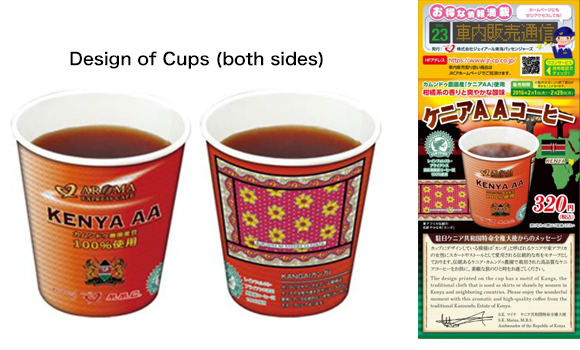 JR-Central Passengers Co., Ltd. is going to sell coffee made from 100% Kenyan coffee beans on Tokaido Shinkansen (Bullet Trains) for one month from Monday, 1st February, 2016.