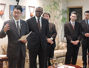 His Excellency Mr. S.K. Maina introduces Hon. Katsuyuki Kawai at the Kenya Residence