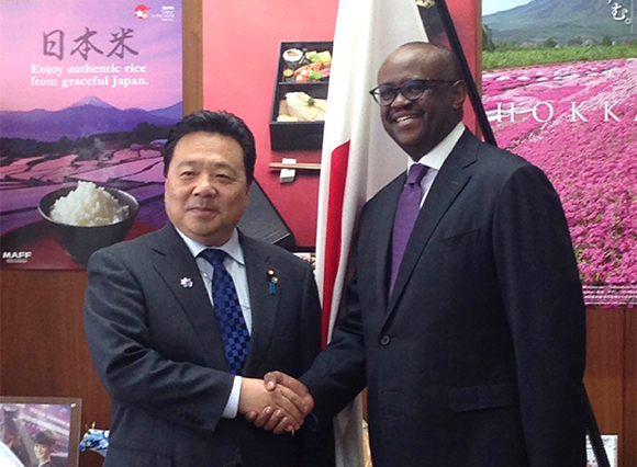 On 30th March, 2016, Amb. S. K. Maina paid a courtesy call on Hon. Hidemechi Sato, Parliamentary Vice Minister for Agriculture, Forestry and Fisheries. The two leaders held fruitful discussions on both TICAD and bilateral relations between Kenya and Japan.