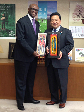 Hon. Hidemechi Sato receives Amb. S. K. Maina at his office in Tokyo