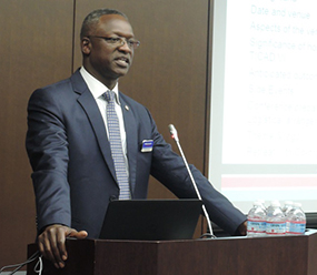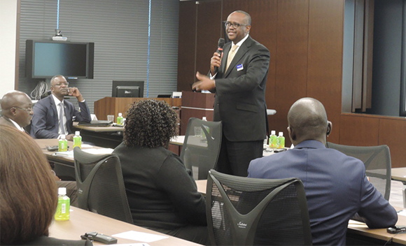 Dr. Ikiara delivers his presentation during the Mizuho Bank Kenya Seminar |
