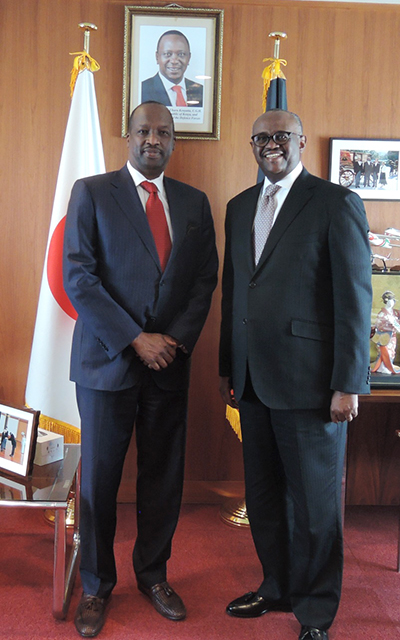 Following the successful Kenya-Japan Small and Medium Enterprises (SMEs) Investment Seminar held in Nagoya, Aichi Prefecture, on 17th May 2016, the National Chairman of the Kenya National Chamber of Commerce and Industry (KNCCI), Mr. Kiprono Kittony, called on H.E. Amb. S. K. Maina on 18 May for further discussions on the Africa-Japan Business Forum that will take place in Nairobi during the TICAD VI Summit slated for 27th – 28th August 2016. Mr. Kittony was one of the invited keynote speakers from Kenya to the forum in Nagoya.
