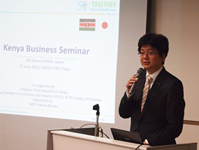 Kenya Business Seminar was held in Osaka on 27th June, 2016. The Seminar was organized on the occasion of a visit by Ms. Heather Munyao, Investment Promotion Officer, Kenya Investment Authority (KenInvest) to Japan, by United Nations Industrial Development Organization's Investment and Technology Promotion Office, Tokyo (UNIDO ITPO Tokyo). It was co-organized by the Embassy, the Osaka Chamber of Commerce and Industry, Japan External Trade Organization Osaka and Japan International Cooperation Agency, Kansai with the support of Ministry of Economy, Trade and Industry, Kansai Bureau.