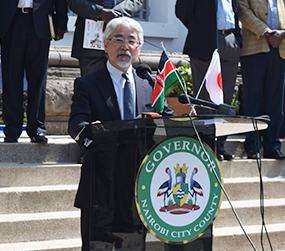 H.E. Mr. Toshitsugu Uesawa (L) and H.E. Mr. S. K. Maina (R) give their remarks during the Ceremony |