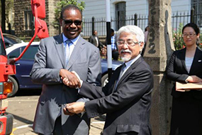 The Fire Engine Trucks(R), Amb. Uesawa Hands over the Fire Engine Truck ignition keys to Dr. Kidero (L) |