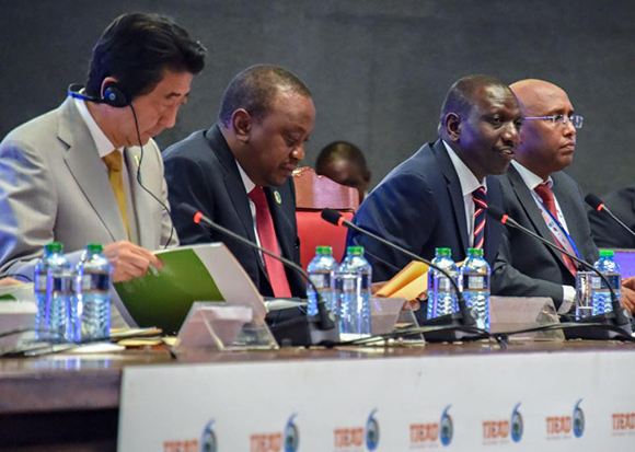 H.E. President Uhuru Kenyatta with H.E. Prime Minister Shinzo Abe, and African Heads of State & Government, and, Business leaders