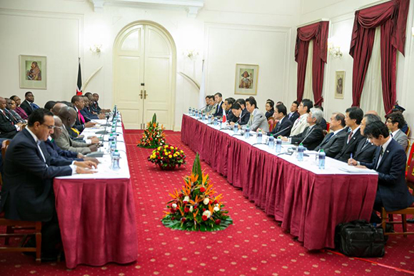 H.E. President Uhuru Kenyatta and H.E. Prime Minister Shinzo Abe lead their respective delegations for bilateral discussions at State House