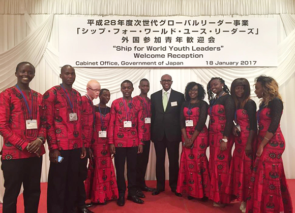H.E. Amb. S. K. Maina, on 18th January 2017, participated in the Welcome Reception of 120 overseas Youth who are in Tokyo, Japan, for the Next Generation Global Leaders Program dubbed “Ship for World Youth Leaders”. Kenya is represented by 10 Youth leaders. The program aims to develop the ability to deal with different cultures and communication skills, consequently, deepening mutual understanding and strengthening the spirit of international cooperation. From Japan, the Youth will sail aboard the “Ship for World Youth Leaders” to Vanuatu, New Zealand, Fiji, and Solomon Islands and back to Tokyo.