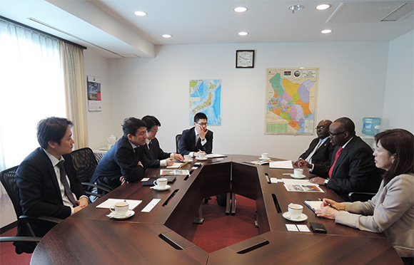 On Tuesday 14th March, 2017, H.E. Amb. S.K.Maina held a consultative meeting at the Chancery with Mr. Mr. Ichiro Sugane General Manager, Mitsubishi Corporation, Liaison Office, Nairobi. Their discussions focused on Company’s activities in the energy sector in Kenya. Mr. Mr. Ichiro Sugane was also accompanied by Mr. Yusuke Takeuchi, Team Leader, Middle East & Africa Team, EMEA Power Business Development Department, Mr. Satoshi Chiba, Manager, Europe & Africa Team, Global Strategy & Business Development Department and Mr. Akira Matsuo, Staff member, Europe & Africa Team, Global Strategy & Business Development Department, Head office, Tokyo.