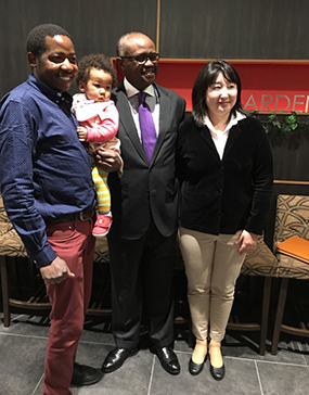 Left: H.E.Amb. S.K.Maina and Right; Paul Kaliih, Minister Counselor, with one of Diaspora Family during the Reception.