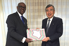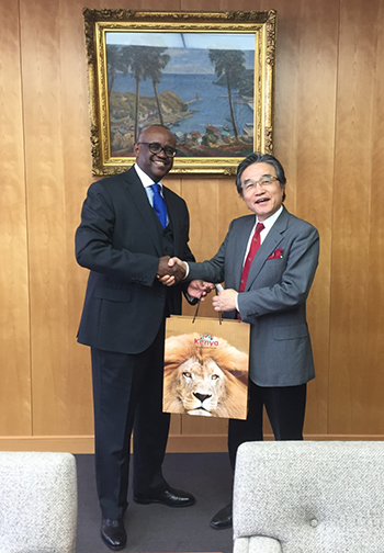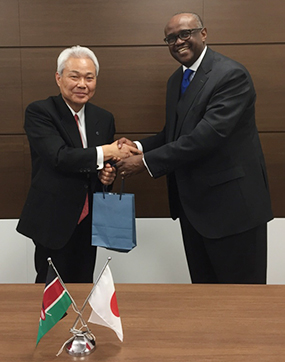 H.E. Amb. S.K. Maina, M.B.S. accompanied by Mr. Paul M. Kaliih, Minister Counsellor and Ms. Naoko Yagi, Trade Assistant. |