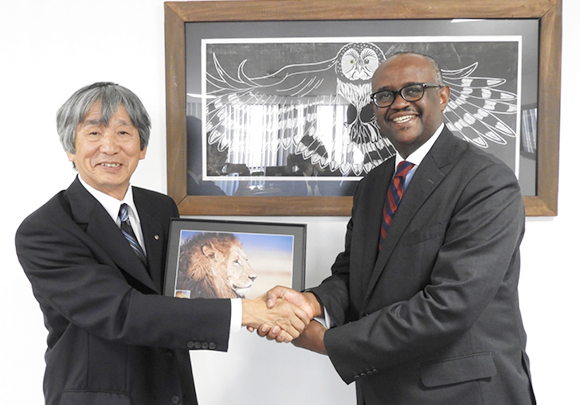 H.E. the Ambassdor accompanied by Prof. Agola and Ms. Naoko Yagi, Trade Assistant. During his meeting with Mr. Tatsuno and other senior managers from mont-bell co., Ltd.