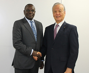 Dr. Cleopa Mailu, EGH, CS, being welcomed by Mr. Takao Suzuki, M.D. Chairman, at Tokushukai HQs, Tokyo.
