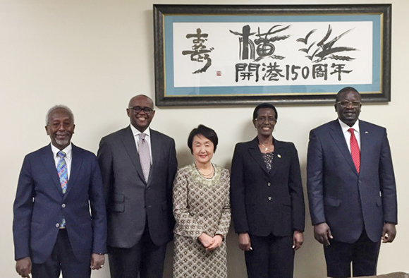 H.E. Mr. S.K.Maina, M.B.S. in his capacity as a Chairman of the ADC Tourism, Culture & Media Committee led members of the Committee (Ambassadors of Djibouti, Rwanda and Ethiopia) to a working visit on the Mayor of Yokohama, Ms. Fumiko Hayashi. The main focus of the meeting was to exchange views on the forthcoming 1st Africa Culture, Tourism/Business Fair and Football Match. H.W. the Mayor welcomed both events which are precursor to TICAD VII that will be held in Yokohama in 2019.