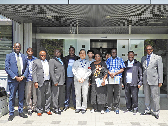 H.E. the Ambassador, Hon.Tong’i, Members of the Committee and Mr. Kawanishi, the plant manager of Shinagawa Incineration Plant posed for a photo after a site visit