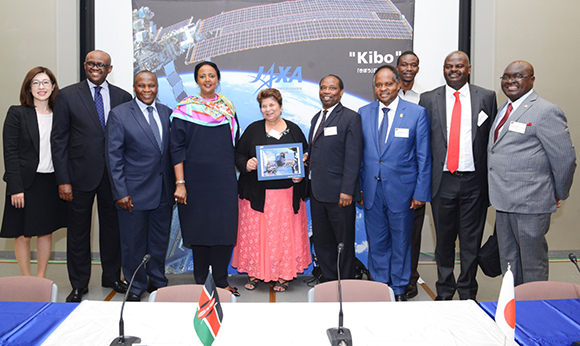 Kenya’s Delegation led by C.S. Dr. Amina C. Mohamed, EGH, CAV and memers of the delegation witnessed the Deployment of 1 KUNS-PF (First Kenyan University NanoSatellite-Precursor Flight) from the International Space Station at 19:30hrs (Japan Time) on 11th May, 2018. This momentous occasion was observed from the Japan Aerospace Exploration Agency (JAXA) Mission Control Room.