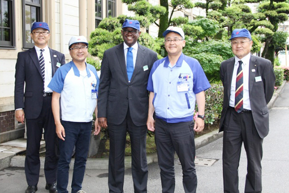 H.E. the Ambassador with MoonStar Corporation officials at the Century Old factory that makes Converse Shoes.