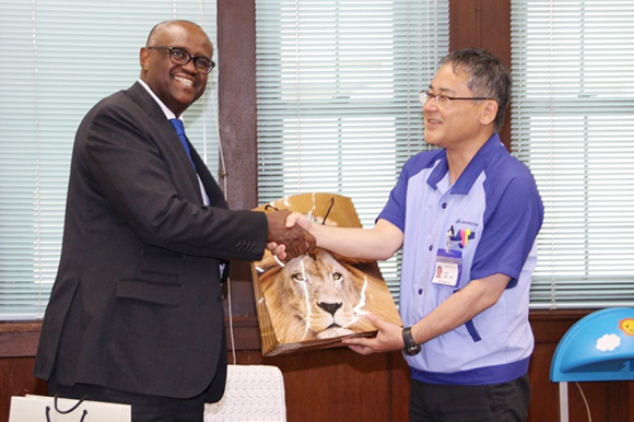 H.E. the Ambassador exchange gifts with Mr. Furutachi, Operating Officer, MoonStar Corporation