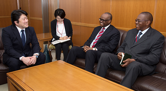 H.E. THE AMBASSADOR AND THE DIRECTOR OF INTERNATIONAL PEACE SUPPORT TRAINING CENTRE (IPSTC) OF KENYA PAY A COURTESY CALL ON THE STATE MINISTER OF DEFENSE OF JAPAN