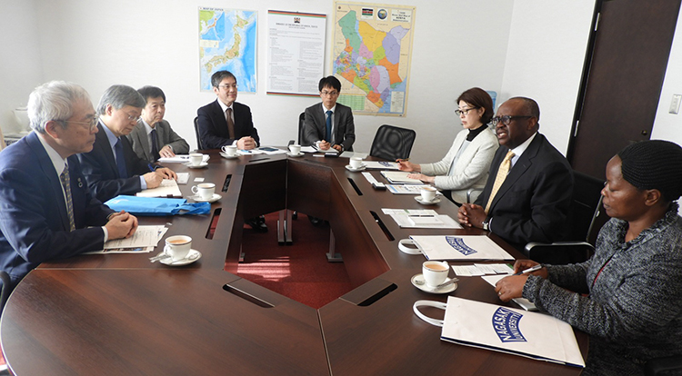 ケニア中央医学研究所(KEMRI)と長崎大学の継続的な協力関係の強化を中心に有意義な論議が行われた。長崎大学はまた、ケニアで実施している様々な重要なプロジェクトについて報告した。大使閣下は、大学が提案する2019年8月開催TICAD 7会期中の「アフリカでの防災とUHC達成の基盤となる感染症制御のための学術研究と高等教育」サイドイベント実施について支持を表明した。
