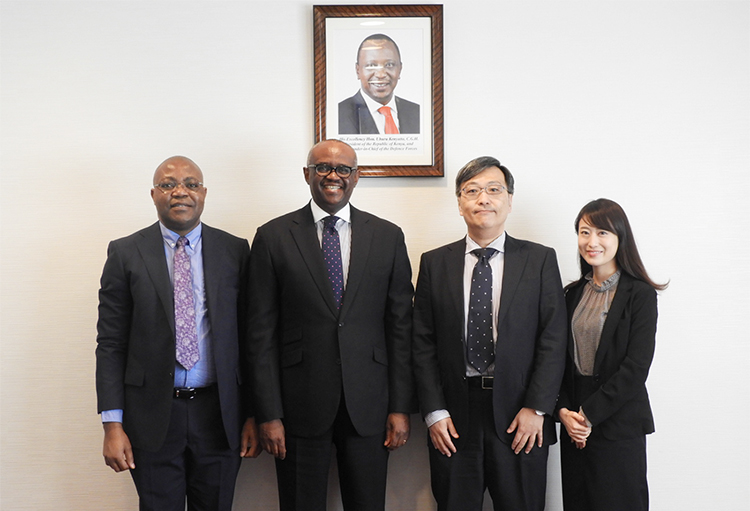 2019年2月27日、三菱商事ナイロビ駐在事務所 新所長に就任する西勝利氏がマイナ大使を表敬訪問した。大使閣下は西氏の就任についてお祝いの言葉を伝えるとともに、イシオロにおける太陽光発電の進捗について報告してくださるようお願いした。西氏と大使は今後も日本とケニアにとって有益なプロジェクトを引き続き進めていくことで合意した。
