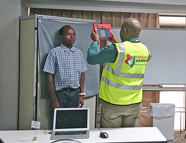 大阪での登録会場で写真撮影を受ける在日ケニア人