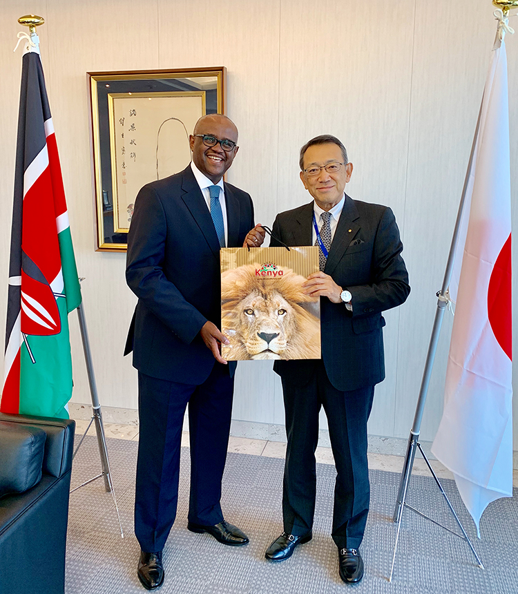 2019年6月25日、マイナ大使閣下は、日本通運株式会社 社長齋藤充氏を訪問した。大使閣下は、日本の物流大手である日通がアフリカ大陸における最初のオフィスをケニアに開設したことに謝意を表した。 日通のナイロビオフィスは2017年8月に開設された。 齋藤社長は、ナイロビオフィスからアフリカにおけるビジネスを展開していき、近い将来には、モンバサにもオフィスを開設したいという意向を示した。 さらに両者は、第7回アフリカ開発会議で、アフリカ発展に重要なプラットフォームとなるビジネスフォーラムについて意見交換した。