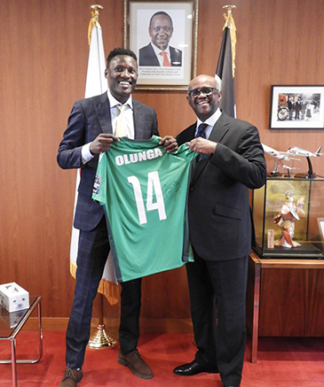 2019年7月22日、プロサッカー選手であるマイケル・オルンガ氏が大使閣下を表敬するため来館した。ハランベー・スターズ ストライカーのオルンガ氏は、2018年8月から柏レイソルで活躍している。