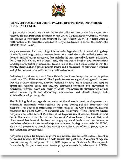 ケニア外務大臣声明: ケニアの豊富な経験を国連安全保障理事会に貢献