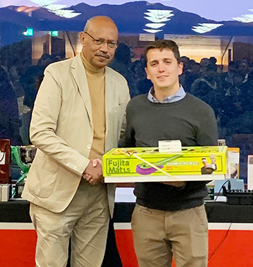 アフォワキ大使閣下から賞品を授与される参加者